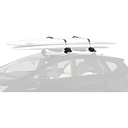 This Inno roof rack holds kayaks, canoes, windsurf boards, paddleboards, SUPs, longboards, and shortboards. The universal Inno Racks Water Sports rack fits round, square, and factory roof rails. It locks differently, too. This mounts water sports gear quickly and securely.